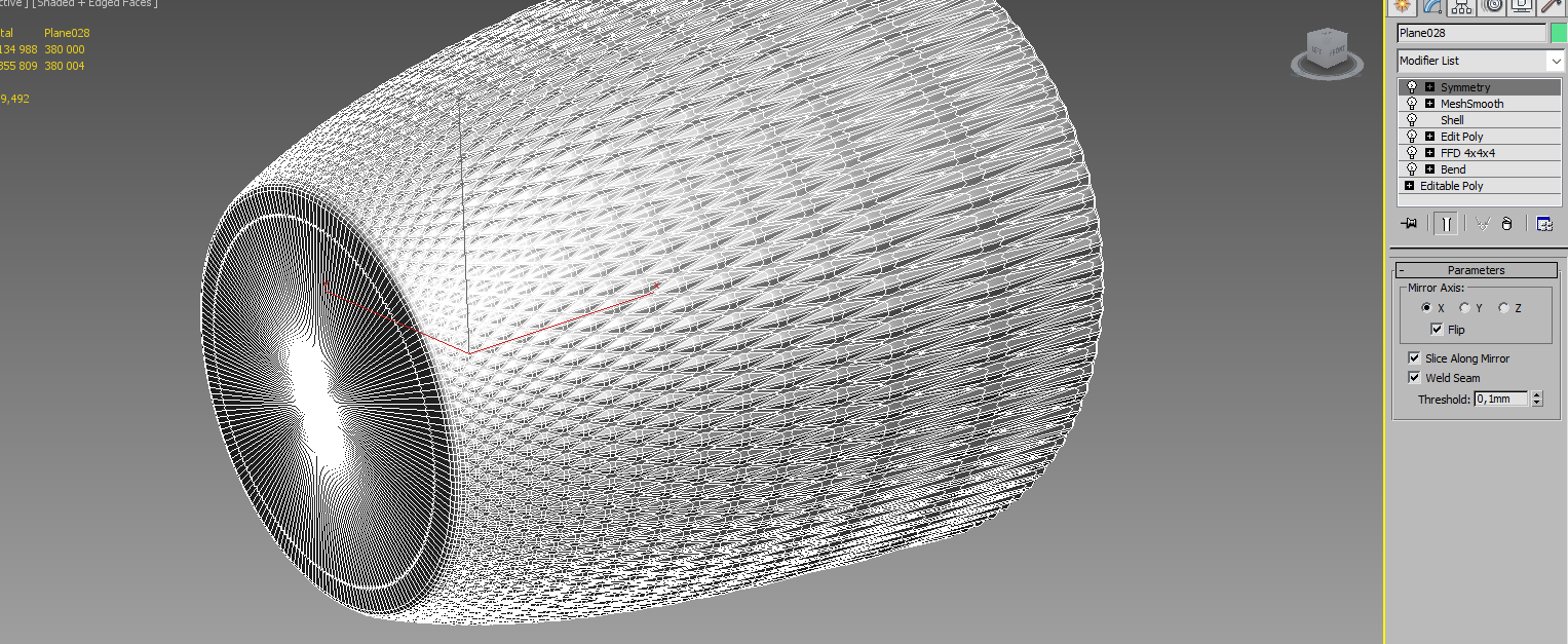 Jedyny obiekt z dłuższym modifier stackiem to te boczne elementy, reszta to w zasadzie edit poly, symmetry, turbo smooth, czasami bend. Te "mapy" na cylindrze są wymodelowane ręcznie, tzn. zrobiona od zera jedna, a reszta na podstawie tej pierwszej pozmieniana trochę ręcznie i za pomocą FFD. Element ze screena zacząłem od pojedynczego paska, potem array, i reszta to co widać na załączonych screenach. Z zewnątrz auto bardzo mi się podoba, ale luksus z wnętrza to akurat wygląda jak złożony z gadżetów z aliexpress. Chyba nieprzypadkowo pierwszą prezentację miał w Szanghaju :)