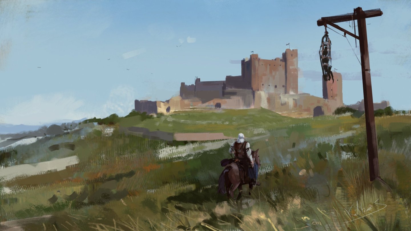 Masz w nim fajne światło wrysowane, spróbuj je rozbudować do 5 walorów i dodać kolor. Znajdź jedną referencję która będzie pasować do światła (hero ref) i dopełnij je kilkoma dookreślającymi charakter i wygląd zbira.
