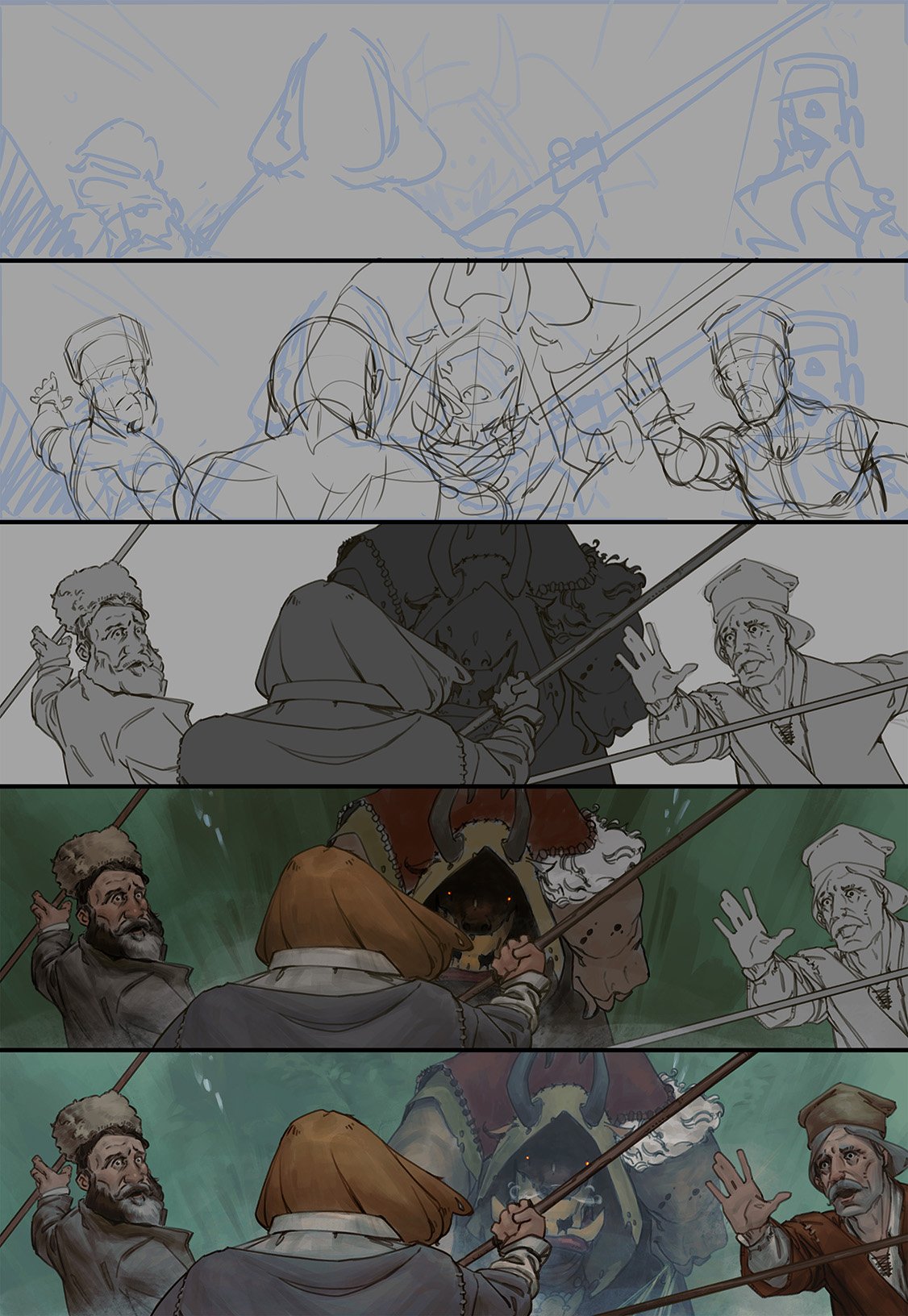 Napisano 15 Maj15 Maj Autor @blood_brother Dzięki za feedback, dlatego wrzucam tu takie wipy, bo jednak człowiek często co innego widzi na swojej pracy niż inni :)Mam nadzieję, że dialogi trochę tutaj wyklarują sytuację jak je już dodam, ale fajnie by było jakby treść była czytelna i bez nich. Zamysł jest taki, że z zaskoczenia wyłazi do nich potwór i młody flisak postanawia mu przydzwonić żerdzią, ku przerażeniu pozostałych.