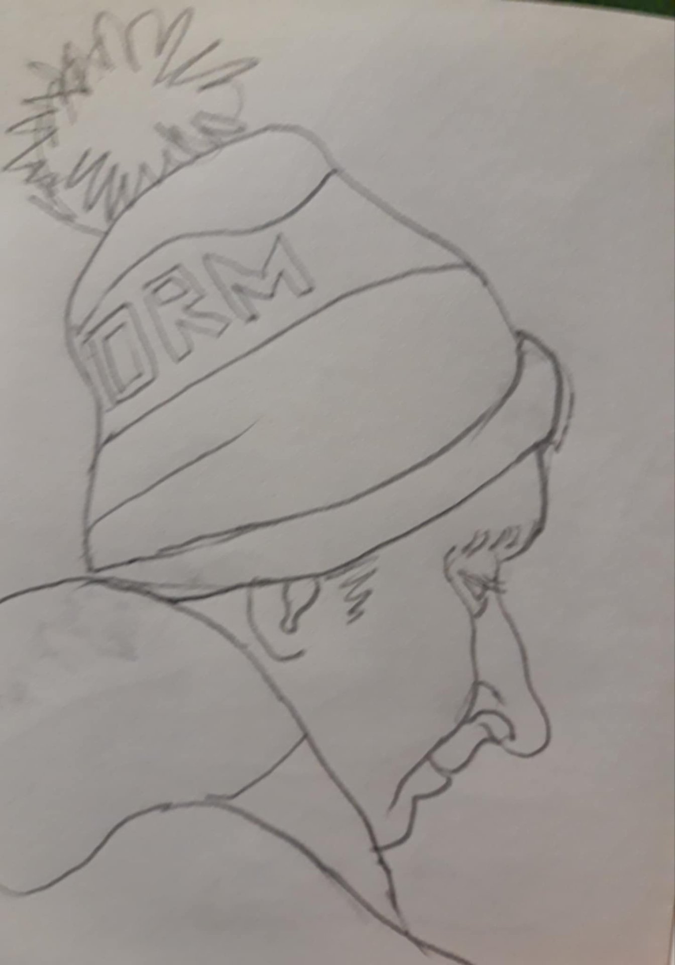 Rysunek został zabezpieczony fiksatywą. Następnie została nałożona imprimitura (farba olejna z większą ilością oleju). Miała ona na celu zabezpieczyć rysunek jak również nadać odpowiedni kolor. Lekkie podmalowanie farbą olejną z większą ilością spoiwa (oleju). Tutaj dobrze widać skale obrazu. Obecny etap, czyli praca już w kolorach docelowych.- Rjab
