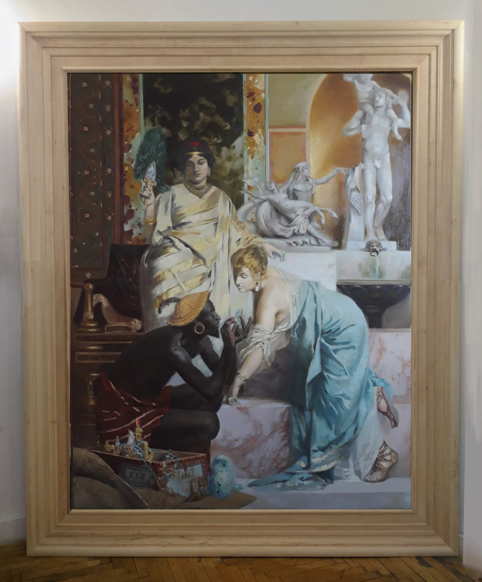 Dziękuję za komentarze i lajki! Zamieszczam krótką informacje o losach tego obrazu i krótki opis sceny. Niestety nie ma w nim opisu kolorystyki obrazu. Mogę dodać że, na skrzynce z amuletami są motywy egipskie. Niestety w książkach spotykałem się z takimi mało szczegółowymi opisami. ''Losy obrazu do momentu utraty: Obraz został namalowany w 1875 r. na zamówienie Pawła Isiejewa, sekrearza Akademii Sztuk Pięknych w Petersburgu. Rok później płótno zdobyło złoty medal na wystawie powszechnej w Nowym Jorku. W 1919 r. „Sprzedaż amuletów” prezentowana była na wystawie „Sto lat malarstwa polskiego”. Obraz stanowił wówczas własność znanego bankowca i kolekcjonera dzieł sztuki Leopolda Kronenberga. Prawdopodobnie w połowie lat 30. dzieło kupił od Kronenberga warszawski cukrownik Mieczysław Broniewski. Obraz zdobił salon pałacyku przy ul. Mokotowskiej 25. Latem 1939 r. płótno zostało wypożyczone na wystawę monograficzną H. Siemiradzkiego, która odbyła się w Towarzystwie Zachęty Sztuk Pięknych w Warszawie. Po wybuchu II wojny światowej obraz został prawdopodobnie przeniesiony do Muzeum Narodowego w Warszawie. Jeszcze w trakcie wojny powrócil do siedziby na Mokotowskiej i pozostał tam przypuszczalnie do 1944 r. Prawdopodobnie został zrabowany wraz z wyposażeniem pałacu w trakcie lub po upadku powstania warszawskiego.''- Rjab