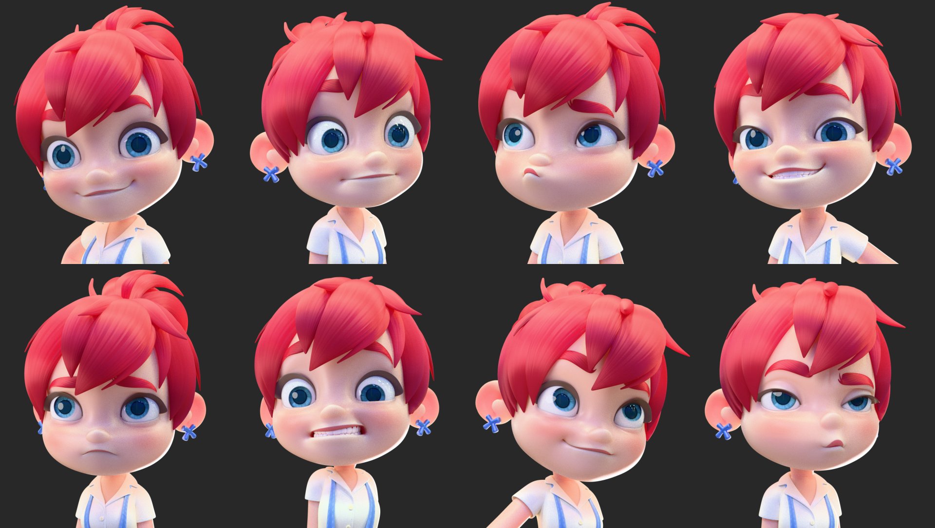 Wszystkiego noworocznego i ogółem całe te. Dawno nic nie było, ale w końcu mam coś do pokazania. Chciałem już cokolwiek wrzucić, więc rendery takie trochę na kolanie. Ale chodzi o pokazanie mimiki a nie o to, żeby było ładnie. Tak więc proszę brać i krytykować. Zrobiłem też prostą animację powitania. Będzie jako naklejka na Discorda.