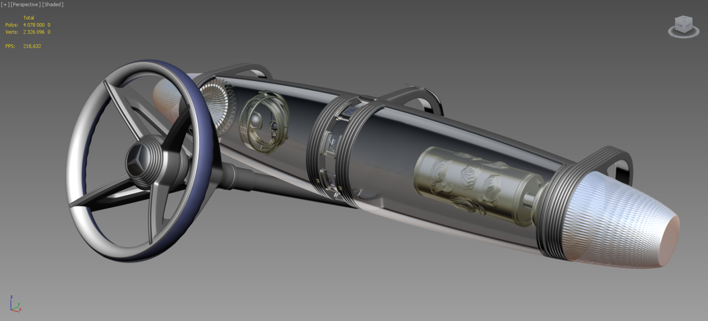 Zrobiłem 7, ale w razie czego łatwo dwie szprychy usunąć bo poszedłem na łatwiznę i nie połączyłem ze środkiem ;) Nie jestem fanem tego wnętrza, projektanci chyba za mocno odlecieli, raczej nie ma szans, żeby w podobnej formie wystąpiło w jakimś produkcyjnym modelu, ale działam dalej. Pierwsze przymiarki, proste formy, żeby rozmieścić elementy i złapać proporcje. i kierownica gotowa:
