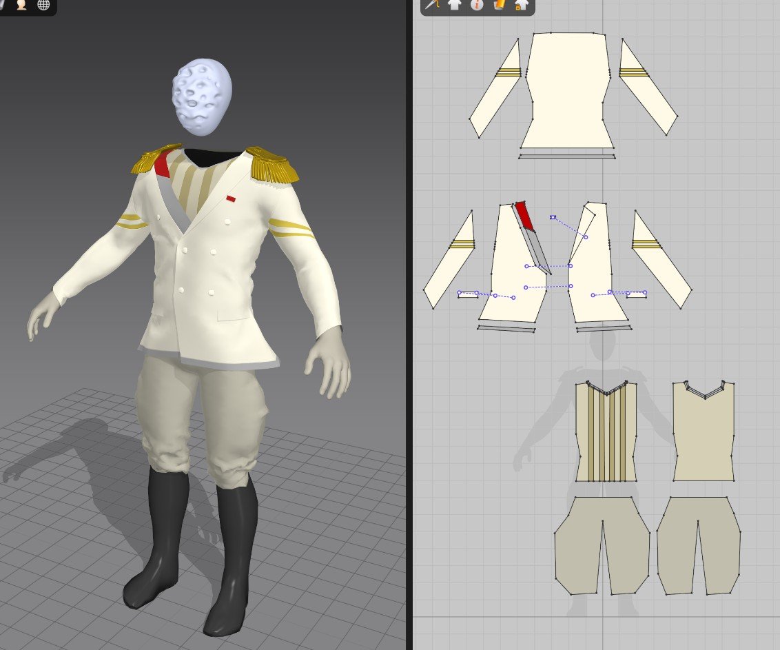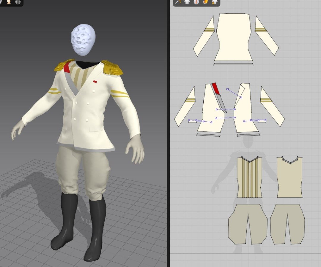 Cześć! Jako że skończyłem inną rzecz, którą robiłem w weekendy przez dość długi czas, postanowiłem, że założę nowy wątek tylko dla tego projektu, aby się trochę zmotywować. Część rzeczy była już w teczce, ale dorzucam tutaj dla informacji. W założeniu ma to być to krótki, niepokojący teaser w stylistyce art-nouveau. Występują w nim dwie postacie: Zabójczyni (czy też rewolucjonistka) i Dyktator (potwór), którego dusza została uwięziona w pudełku (hehe) a zarazem ogrodzie (więzieniu). Jak na nieco pastiszowy horror przystało, potwór na końcu uwalnia się. (Od razu zaznaczę, że jeśli uda mi się skończyć stilla pierwszej sceny to też będę bardzo z siebie zadowolony ;) Na początku miałem prosty scenariusz, do którego złożyłem wstępną muzykę w GarageBand, aby do niej zmontować później klip: Na podstawie tych dwóch rzeczy powstał animatik: Następnie wykonałem nieco bardziej dokładny koncept sceny z Kobietą ("Penelopa") Oraz koncept ogrodu - sceny z Dyktatorem Zacząłem już na czysto modelować environment do pierwszej sceny, kilka detali wciąż do ogarnięcia przed kolejnym etapem Zrobiłem mały research jak korzystać z Metahumana: Posiedziałem wstępnie nad twarzą babeczki, na podglądzie było w miarę ok.. W Unreal wygląda za bardzo męsko, muszę coś pozmieniać. Może wybrałem złego avatara na początek, bo do tej z konceptu nijak nie udało się zbliżyć. Choć nie uważam, że musi być taka sama twarz jak na koncepcie. zacząłem szkicować ubranie w Marvelous Designerze (ciało będzie już bez zmian) Jeszcze dużo pracy przede mną, żeby ubranko nabrało kształtu. Najprawdopodobniej zeskinuję później tylko górną część garderoby, a spódnicę zasymuluję w pozycji siedzącej. Ale wstępny krój już mam. Myślałem, że to wszystko będzie bardziej skomplikowane jak narazie :). No i znalezienie tutka na temat robienia customowych włosów to też jeden, dwa kliki. Na razie taki progresik